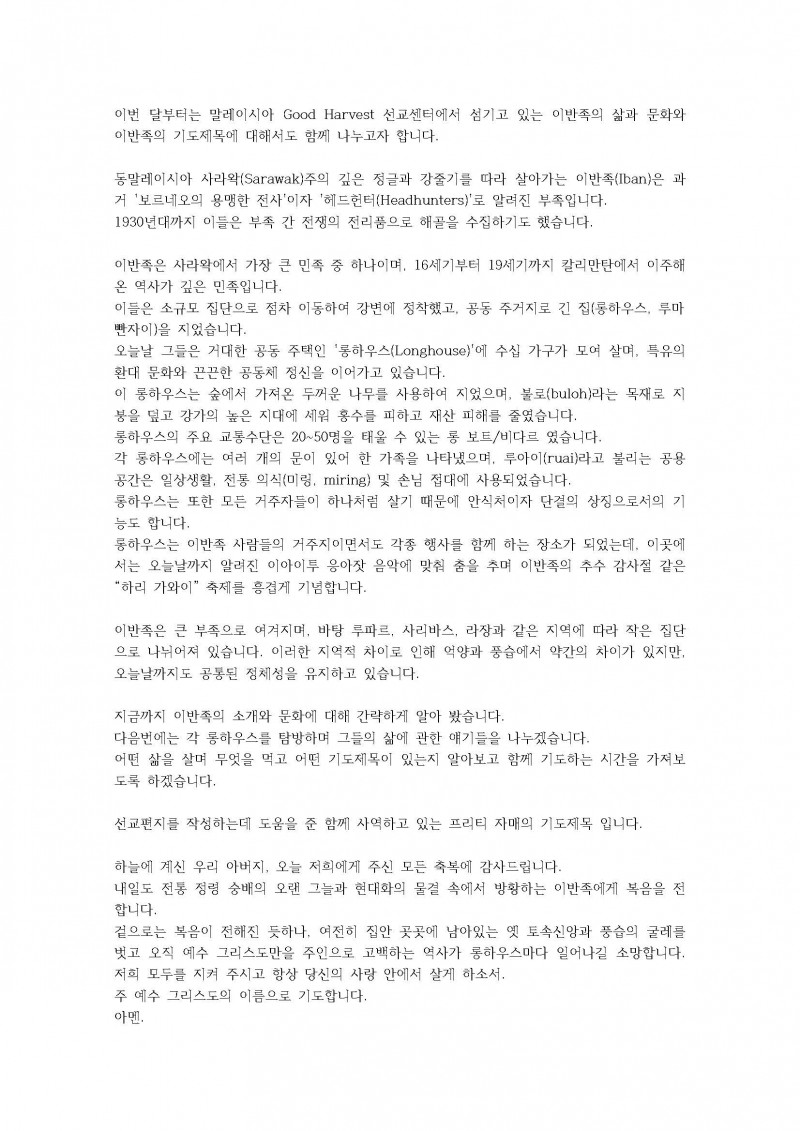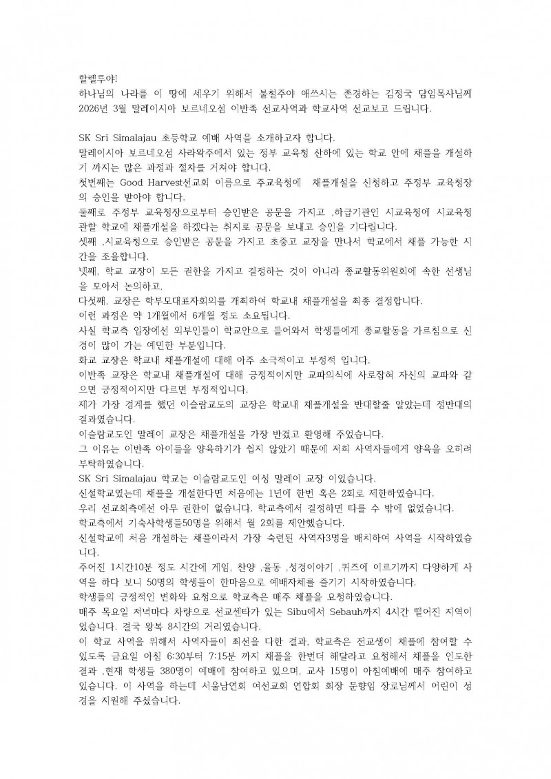말레이시아 선교보고 (26년 2월-26년 3월)