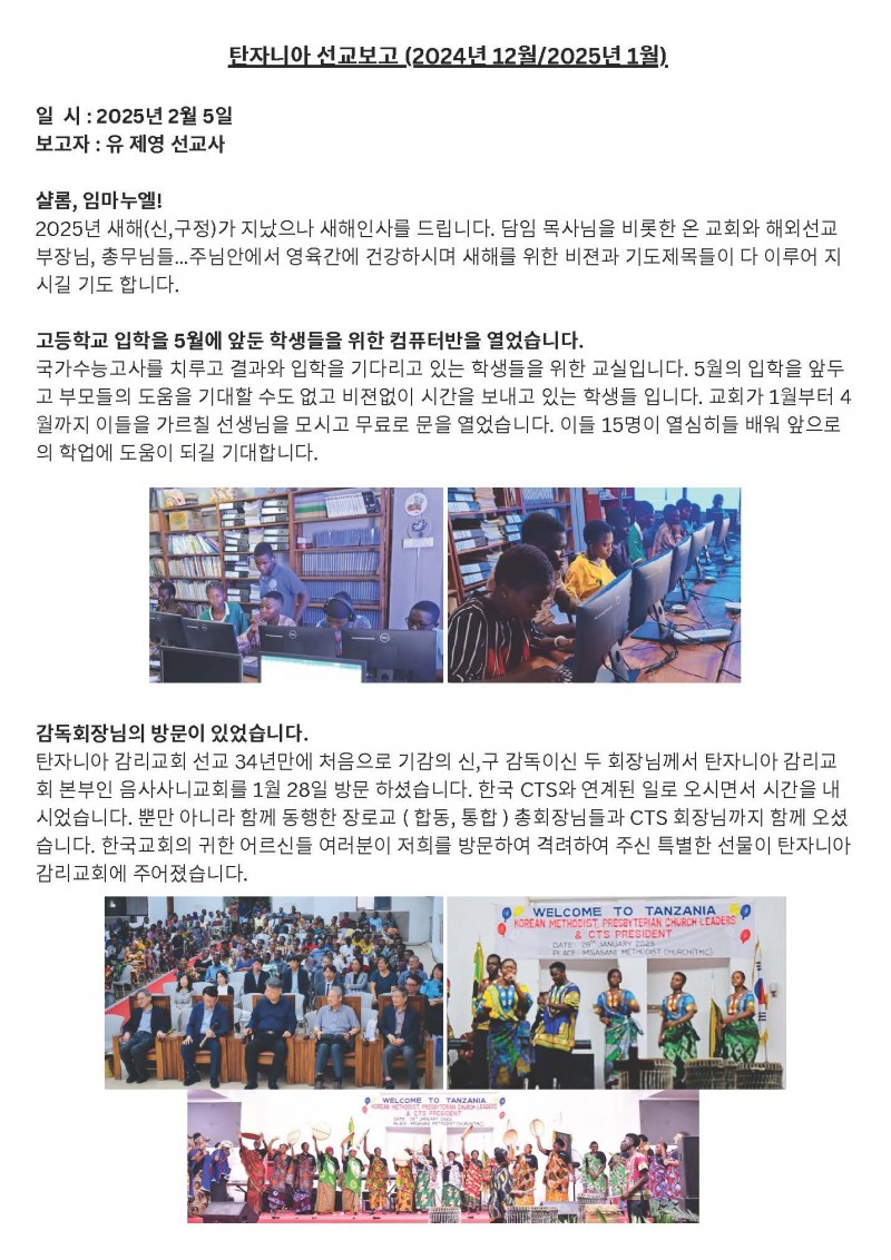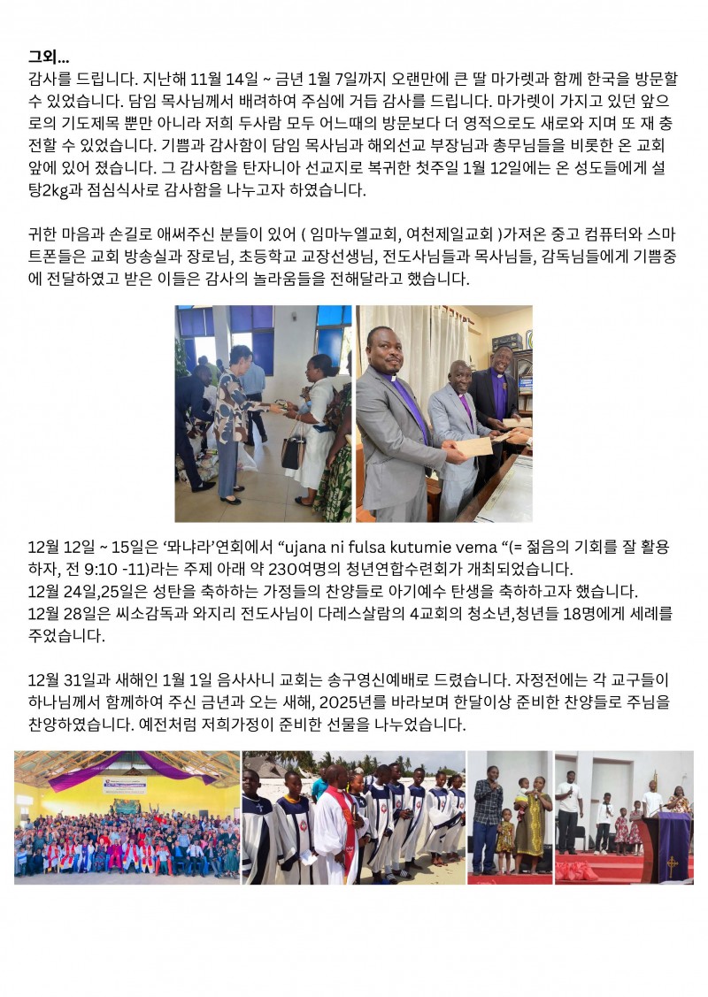 탄자니아 선교보고 (24년 12월-25년 1월)