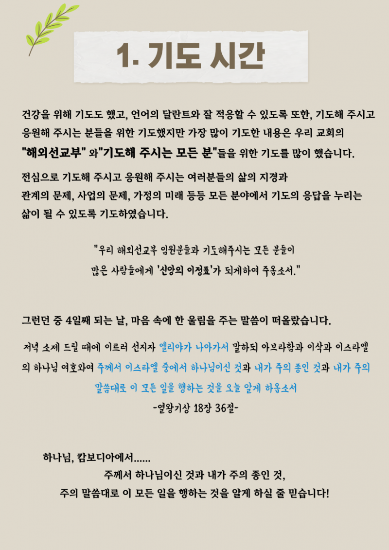 캄보디아 첫 선교보고 (24년 4-5월)