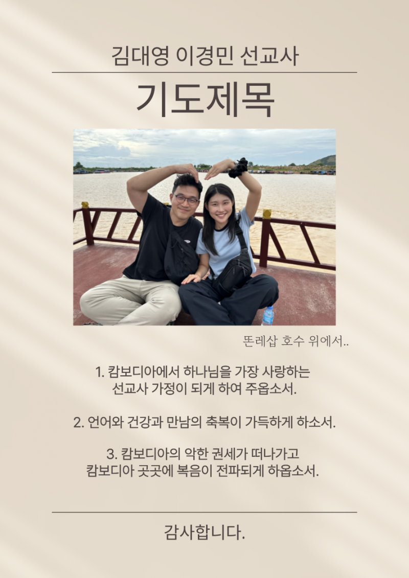 캄보디아 선교보고 (24년 6-7월) 페이지 정보 작성자 최고관리자 작성일24-08-07 16:24 조회1,015회 관련링크 https://youtu.be/abaIvzEIhAw?si=ZqOgY5IOqoYCUIsB 577회 연결 이전글 다음글 목록 본문 이전글 다음글 목록