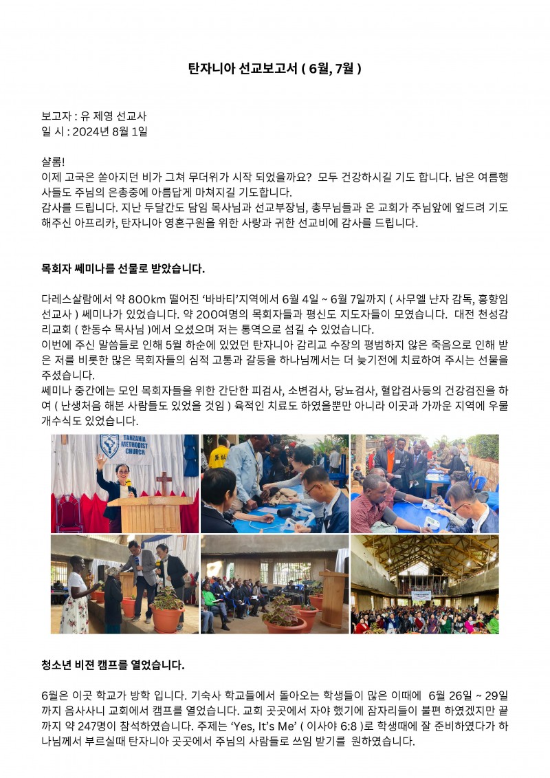 탄자니아 선교보고 (24년 6-7월)