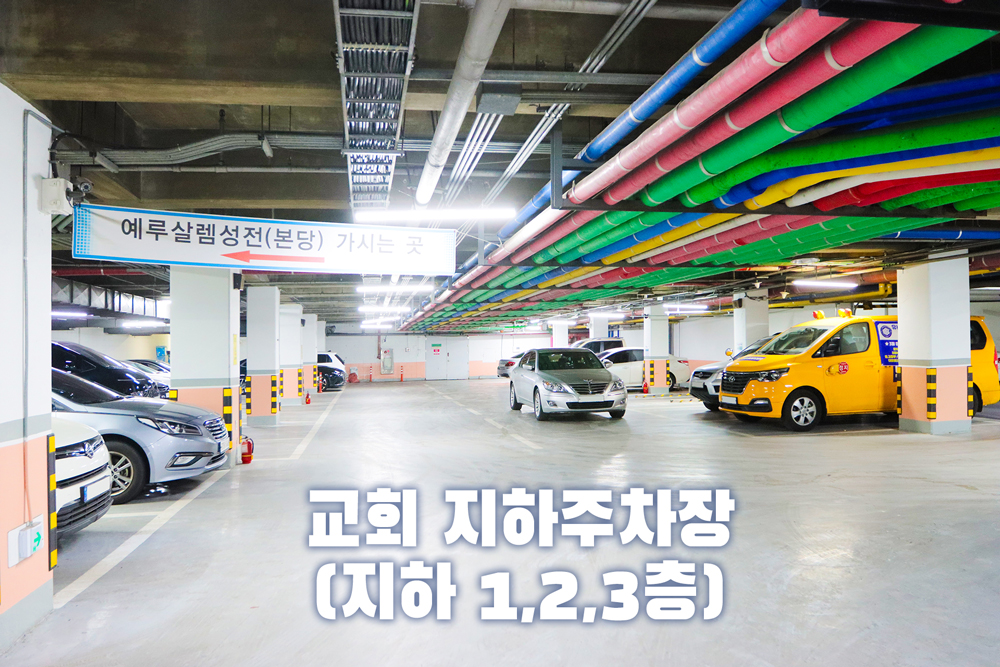 2. 교회 지하주차장 : 115대 (주차선 : 75대 / 통로 : 40대)